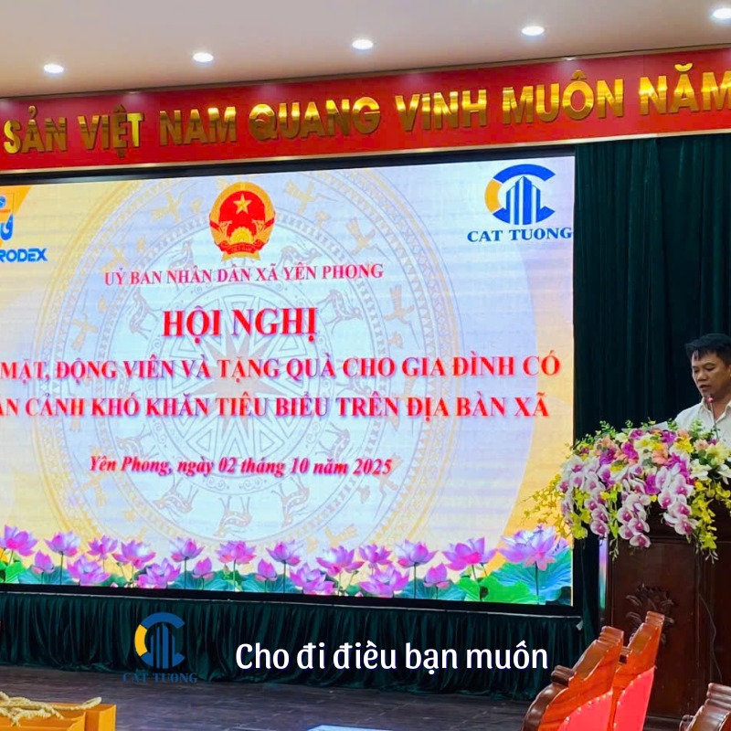 👉 Hội nghị tại Yên Phong ngày 02/10/2025 là minh chứng rõ nét cho tinh thần trách nhiệm và tấm lòng sẻ chia, khẳng định thương hiệu Cát Tường không chỉ vững mạnh trên thương trường mà còn giàu tình cảm, giàu lòng nhân ái trong cộng đồng.