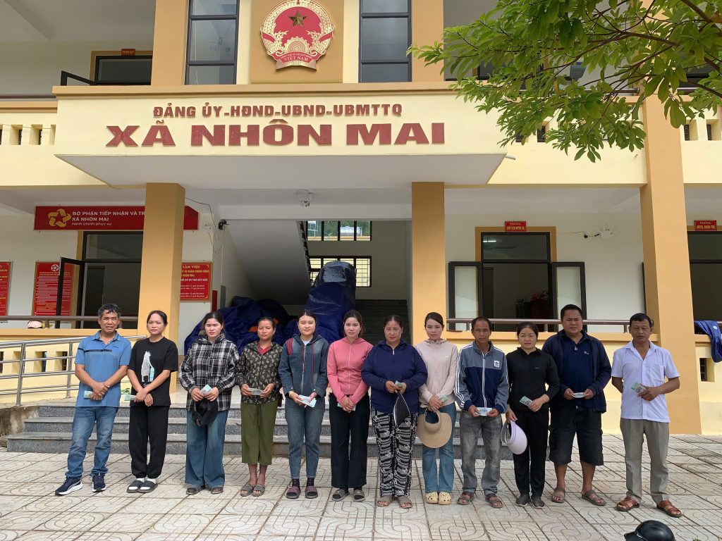Tại đây, 110 hộ dân đã được hỗ trợ, mỗi hộ 1,5 triệu đồng, cùng nhiều phần quà thiết thực khác. Ngoài ra, đoàn còn tài trợ khoan giếng nước sạch cho 7 bản – giải quyết tình trạng thiếu nước sinh hoạt nghiêm trọng sau lũ, đồng thời hỗ trợ sửa mái trường mầm non để các em nhỏ có nơi học an toàn hơn trong mùa mưa tới.