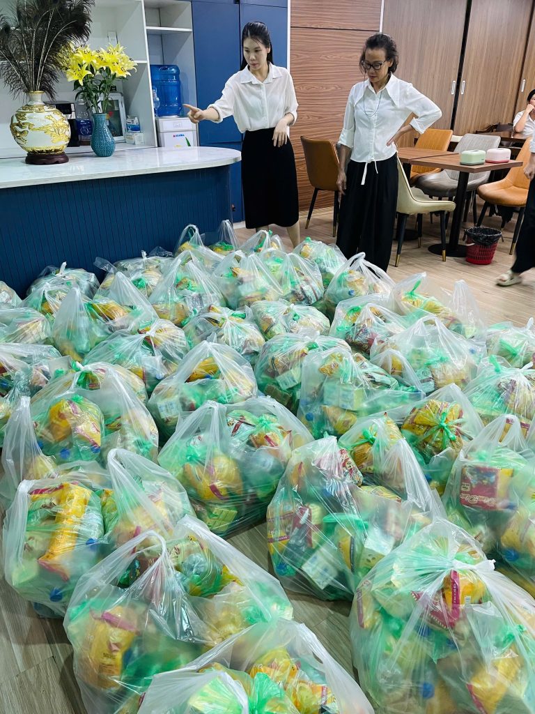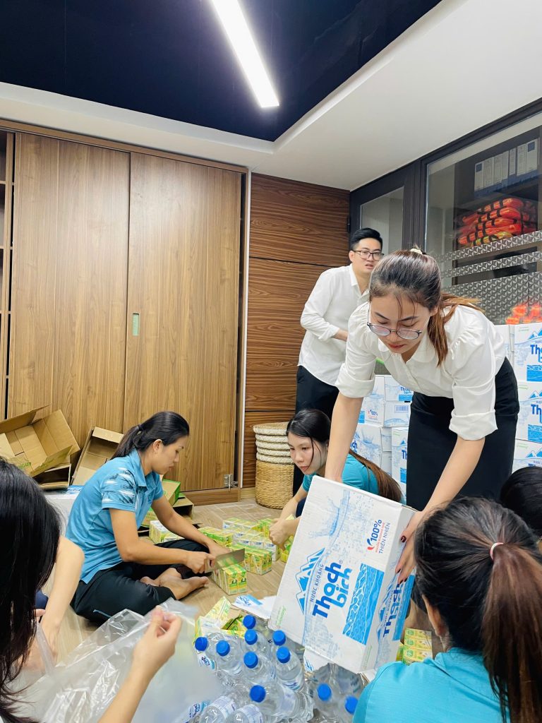 Hình ảnh người Cát Tường cùng chung tay đóng gói đồ gửi đến các vùng nước lũ