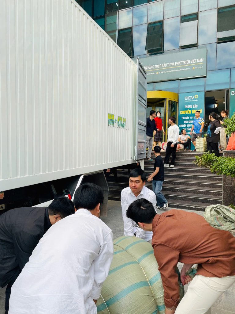 Dù trời nắng hay chiều xuống, đội ngũ Cát Tường vẫn miệt mài bốc xếp từng bao hàng lớn lên xe container. Những hình ảnh nhân viên công ty – từ các phòng ban văn phòng đến đội dự án – cùng nhau nâng, đẩy, kéo các bao đồ nặng trĩu… đã tạo nên một bức tranh đẹp về tinh thần đoàn kết.