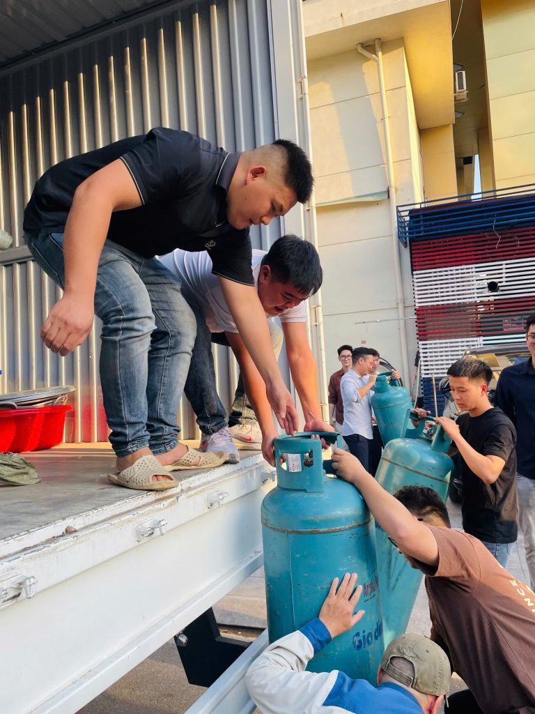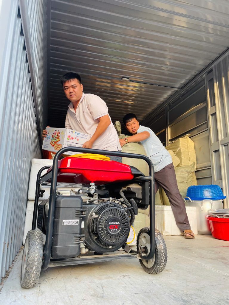 Những thùng hàng được xếp đầy kín xe, thể hiện quyết tâm không để bất kỳ ai bị bỏ lại sau thiên tai.