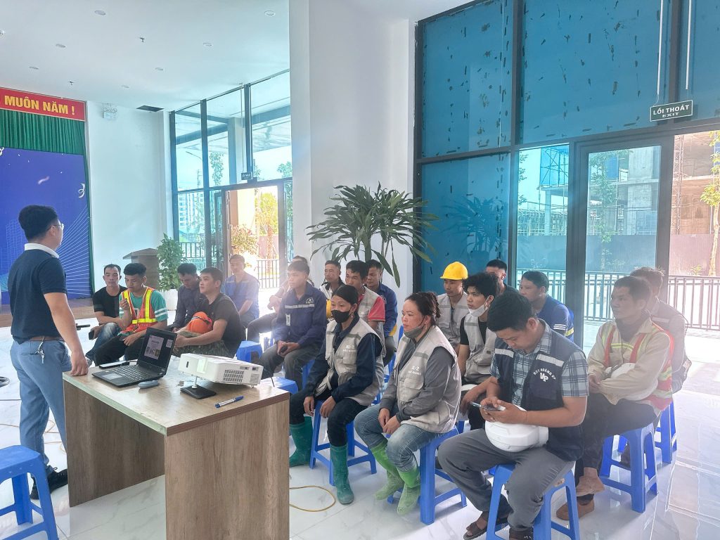 Không chỉ dừng lại ở một chương trình ngắn hạn, huấn luyện an toàn vệ sinh lao động đã trở thành hoạt động bắt buộc, triển khai hàng tháng tại công trường.