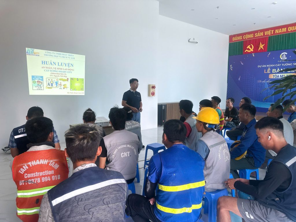 Buổi huấn luyện an toàn vệ sinh lao động tháng 9 tại công trường Cát Tường Smart City đã diễn ra thành công, nhận được sự hưởng ứng tích cực của toàn bộ cán bộ, kỹ sư và công nhân. Đây là minh chứng rõ ràng cho sự chuyên nghiệp, trách nhiệm và cam kết bền vững trong quá trình xây dựng dự án.